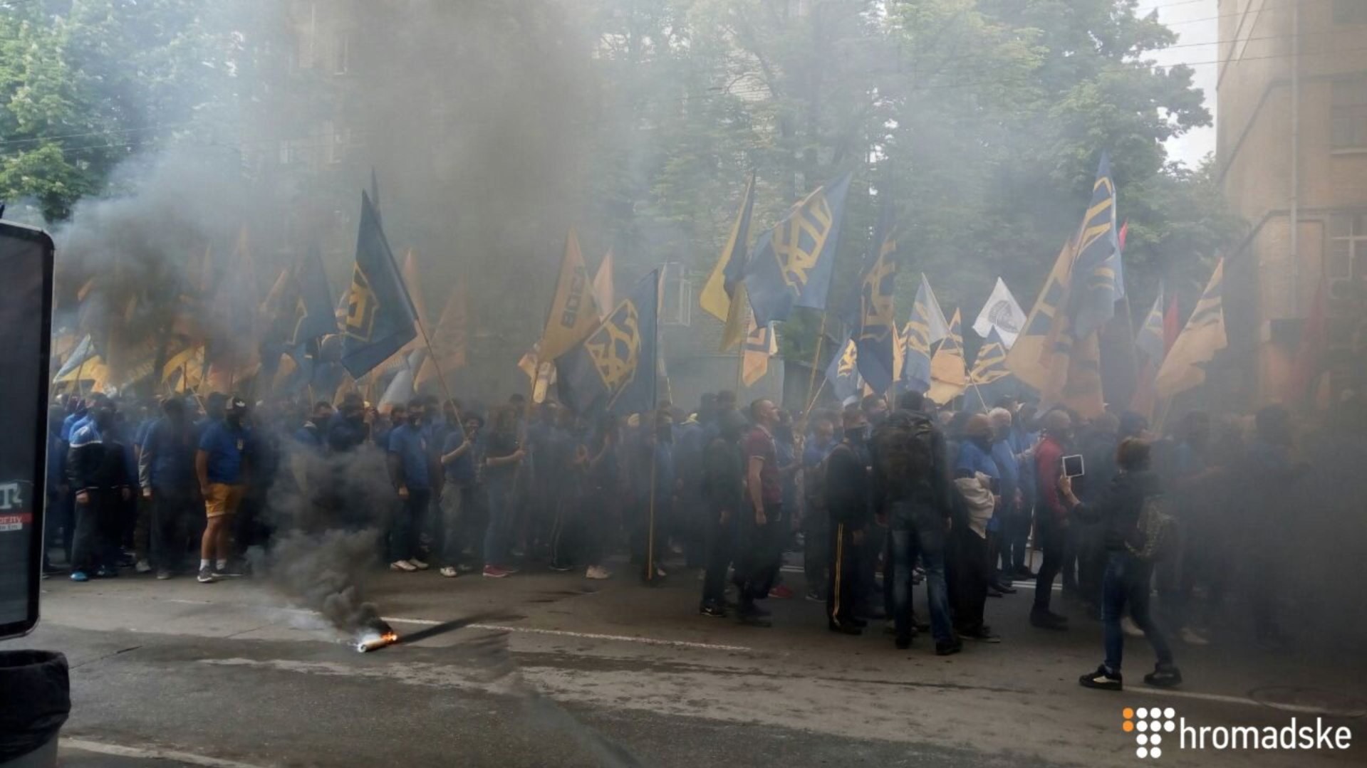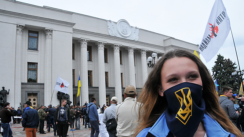 В Киеве представители "Азова" проводят акцию под названием "Требования Нации - нет капитуляции" с требованием не допустить выборов на оккупированных территориях Донбасса.