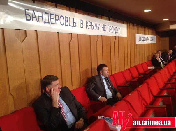 Последнее в нынешнем году заседание Верховного Совета Крыма началось со скандала. 25 декабря депутаты вывесили в сессионном зале плакаты "Янукович – Крым – Россия!", "Крым – за Таможенный союз!", а также "Бандеровцы в Крыму не пройдут!" и "ВО "Свобода" – к ответу!".