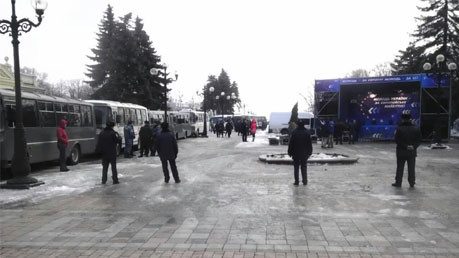 В Мариинском парке возле здания 3 сосредоточены более 30 автобусов с сотрудниками милиции. Если учитывать, что в каждом автобусе помещаются до 30 человек, общее количество стражей порядка может доходить до 900. Дежурят также кареты скорой помощи, передает ЛІГАБізнесІнформ.