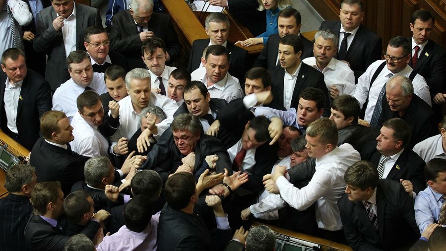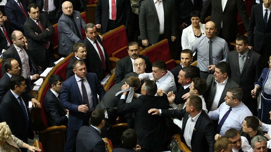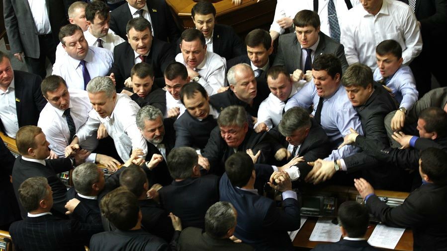 Народным депутатам не удалось спокойно поработать во вторник, 19 марта. После выступления лидера ВО "Свобода" Олега Тягнибока, депутаты заблокировали трибуну Верховной Рады и началась драка.