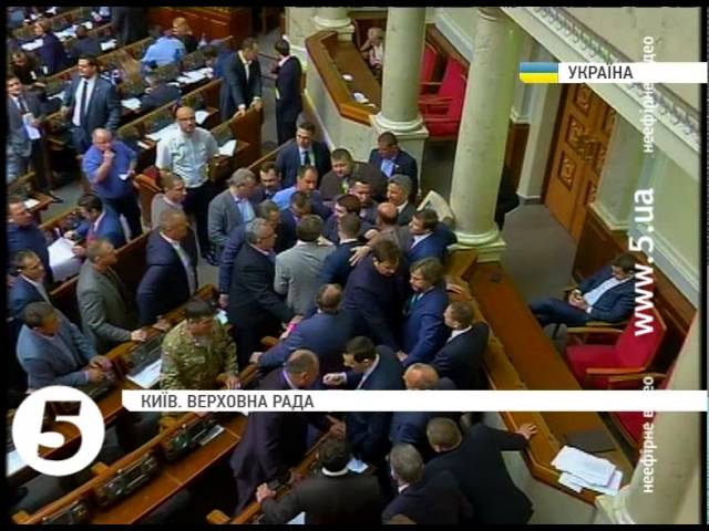 В парламенте в четверг возникла потасовка после обвинений со стороны главы "Радикальной партии" Олега Ляшко в отношении депутата от "Оппозиционного блока" Сергея Дунаева в подыгрывании терроризму.