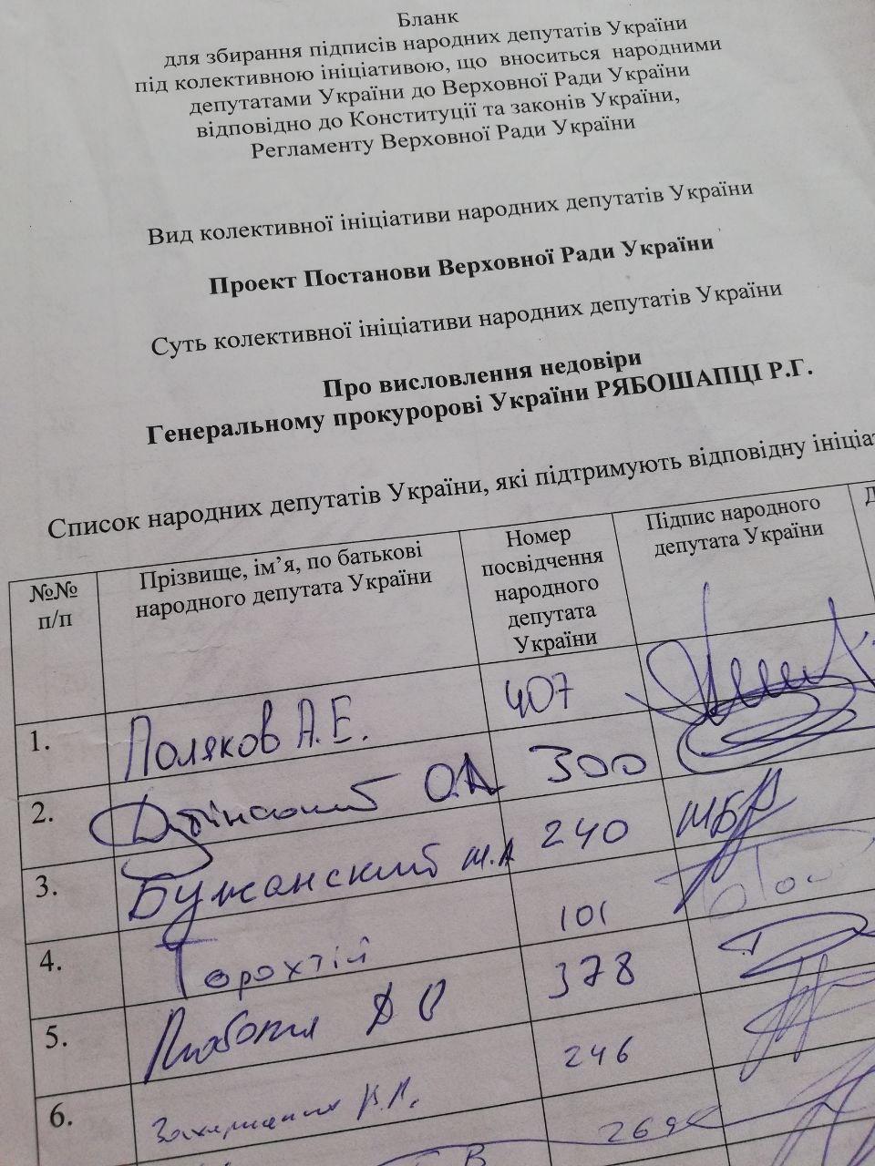 Ряд народных депутатов по-своему готовится к внеочередному заседанию Верховной Рады 4 марта. Группа близких к олигарху Игорю Коломойскому депутатов возобновляет сбор подписей за отставку генерального прокурора Руслана Рябошапки.
