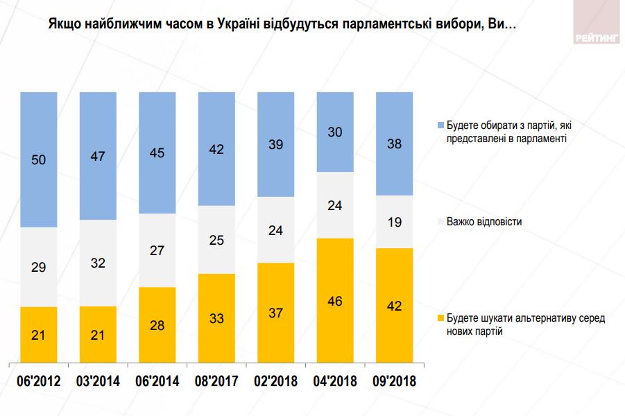 В то же время 42% опрошенных заявили, что на предстоящих парламентских выборах будут искать альтернативу среди новых партий, а 38% - сказали, что будут голосовать за парламентские политические силы.
