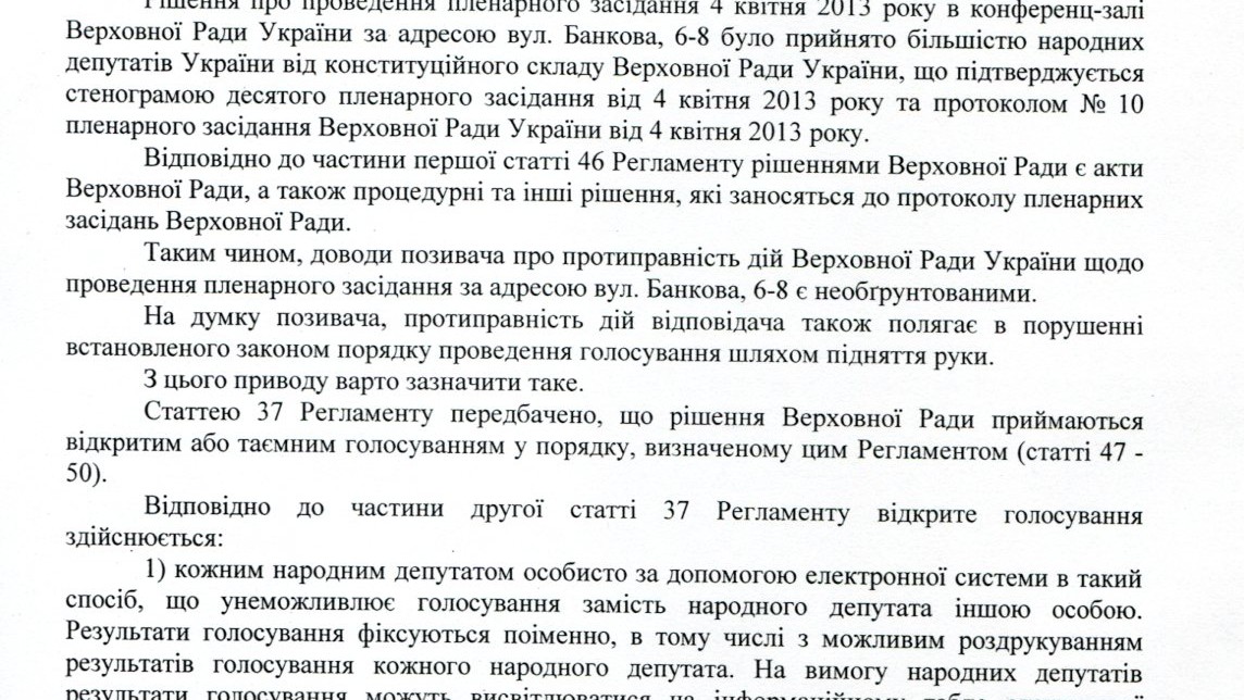"Коллегия судей пришла к выводу, что проведение 4 апреля десятого пленарного заседания Рады по адресу улица Банковая, 6-8, при наличии присутствующих 244 народных депутатов Украины, отвечает требованиям законодательства Украины, что свидетельствует о том, что Верховная Рада Украины была правомочна реализовывать конституционно определенные полномочия, в частности принимать законы, которые могут быть поданы на подпись председателю Верховной Рады Украины и, в случае их подписания, в дальнейшем представлены на подпись президенту Украины согласно требованиям законодательства Украины, - говорится в сообщении.