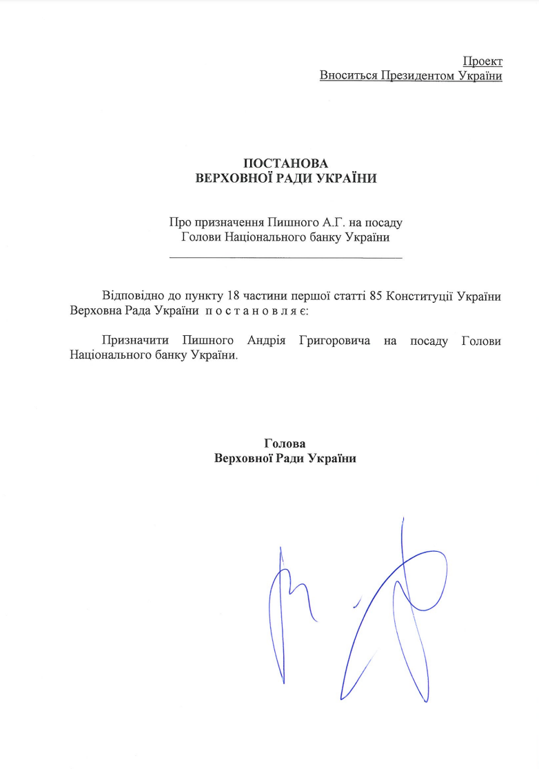 Президент Украины Владимир Зеленский внес на рассмотрение Верховной Рады кандидатуру Андрея Пышного на должность главы Национального банка Украины. Соответствующий проект постановления опубликован на сайте парламента в четверг, 6 октября.