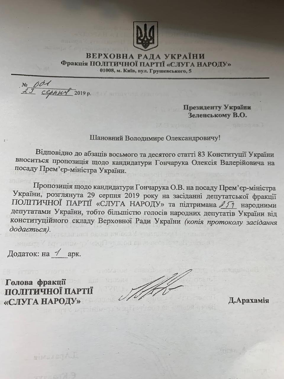 Президент Украины Владитмир Зеленский внес в Верховную Раду кандидатуру Алексея Гончарука на должность премьер-министр Украины. Представитель президента в парламенте Руслан Стефанчук также сообщил о том, что кандидатуру Гончарука уже внесли, пишет издание "The Page".