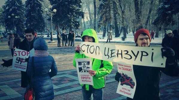 Под стенами здания Верховной Рады 2 декабря прошла журналистская акция протеста против намерений создать в Украине министерство по делам информационной политики.