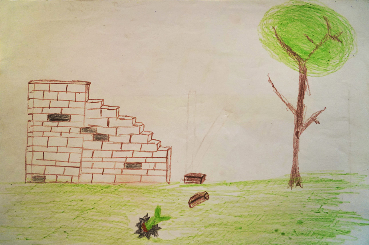 Это видно, например, по рисунку 12-летнего Андрея из Авдеевки, изобразившего танк, едущий по улицам города и направивший свое дуло на окна жилого дома. Андрей - единственный ребенок в семье. Вместе с любящими родителями он живет в старой части города, примыкающей к промзоне. Дом находится очень близко к полю боя. И в него не раз попадали пули, мины и грады. Окна заложены мешками с песком почти доверху. Этот дом родители Андрея купили перед войной, продав квартиры в центре города и вложив в него все свои сбережения. Еще оставалось много внутренних работ, но это был дом их мечты - с прекрасным садом, с виноградником… Дом, с началом войны оказавшийся в паре сотен метров от линии фронта.