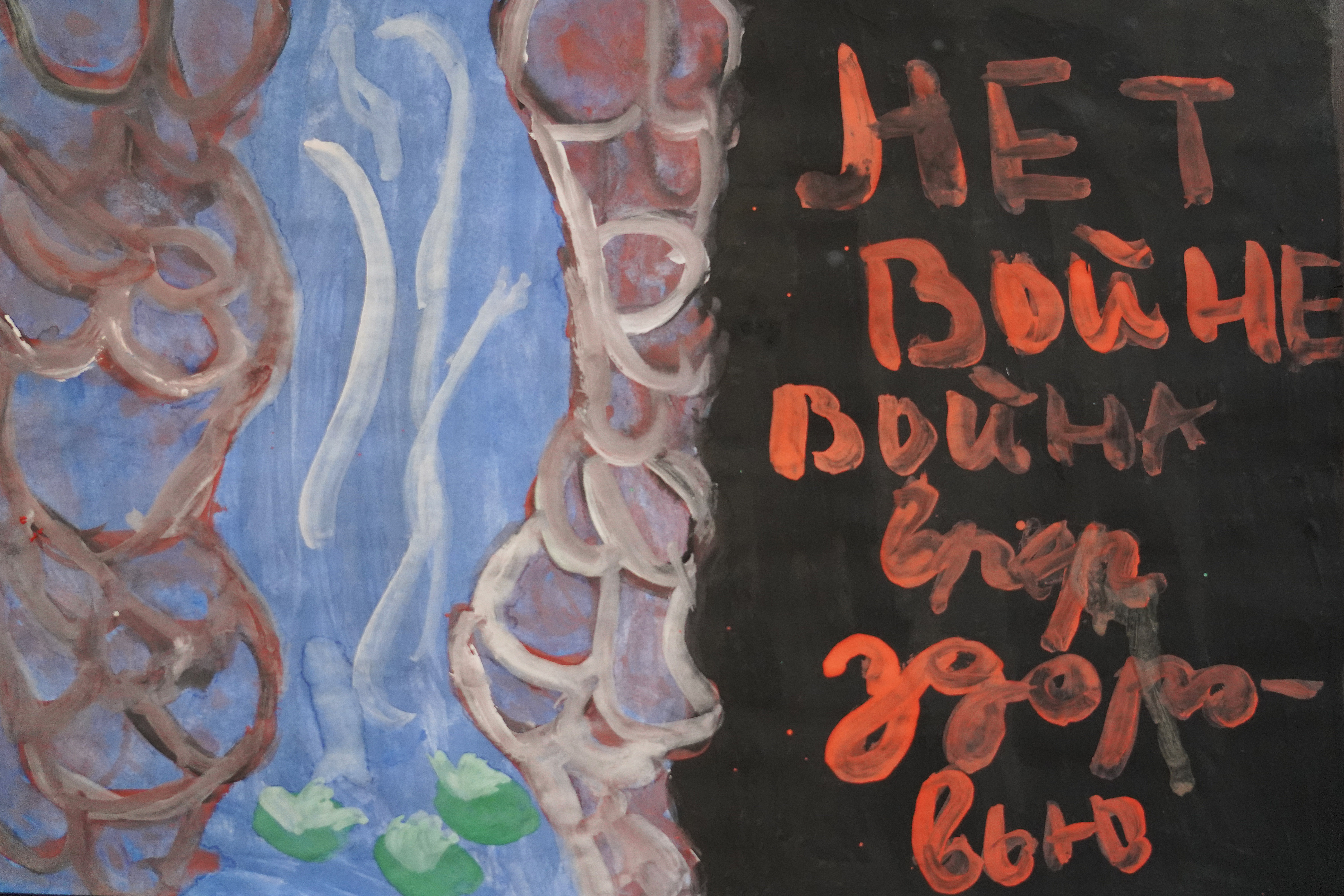 8-летняя Алина нарисовала плачущую девочку с закрытыми глазами, которая держит в руках плюшевого мишку. Ее папа умер. Алину и ее 10-летнего двоюродного брата Мишу воспитывает бабушка. Отец Миши пьющий, уехал в Москву. Там у него другая семья. О мамах ничего не известно. Живут дети на линии огня. И Миша нарисовал танки на зеленом поле.