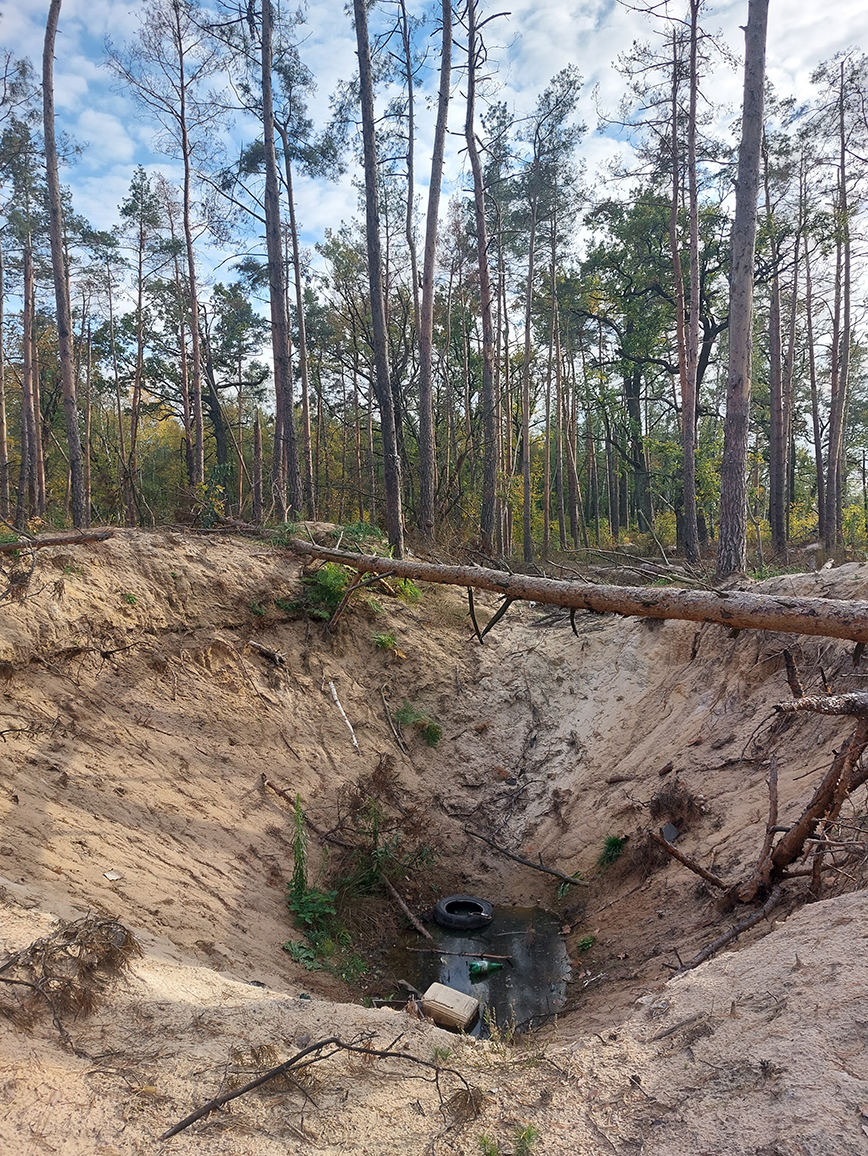 Если оглядеться вокруг, в мощунском лесу еще много личных вещей и предметов быта украинских военных. Вот там чей-то сын застилал пленкой дно блиндажа, где постоянно была вода. На другом конце цепочки блиндажей — остатки полевой кухни. А дальше — аккуратно сложенный спальный мешок, в котором, возможно, холодной ночью видел свой последний сон чей-то отец. На спальнике стоит подписанный белым ботинок «с-т булдак», кусок бинта…