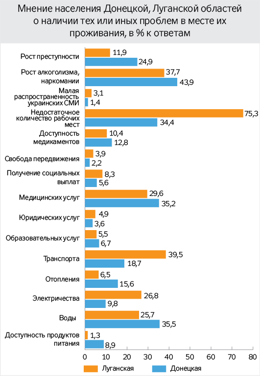 (Выборочная совокупность опроса составляет 800 человек в подконтрольной украинской власти части Донецкой и Луганской областей. Параметры выборочной совокупности отражают модель генеральной совокупности и отвечают требованиям репрезентативности, которая позволяет распространить выводы исследования на население в районах опроса избранных областей.)
