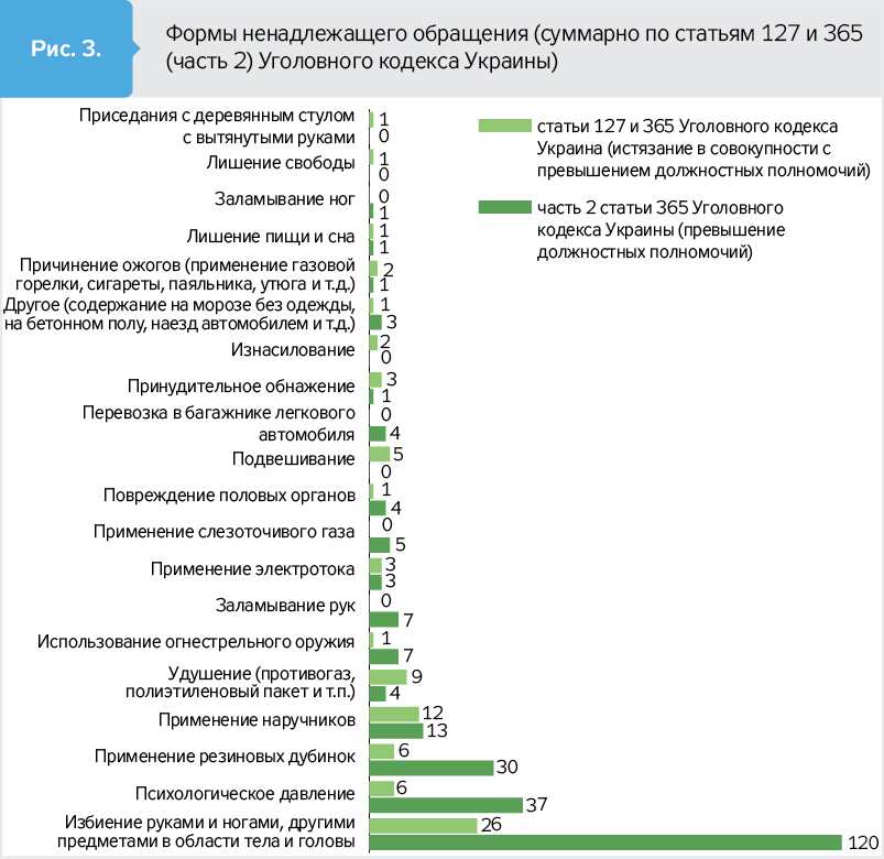 Большинство таких дел квалифицируют как превышение служебных полномочий, связанное с насилием (статья 365, часть 2 УКУ). Однако и их ежегодно доходит до суда не более 15–20.