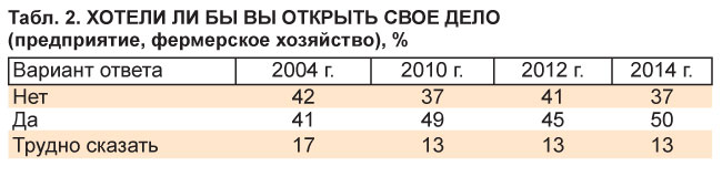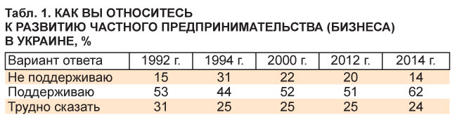 За постсоветское время у нас образовалось не очень широкое "сословие" мелких и средних предпринимателей. За период правления Януковича оно вдвое уменьшилось, составляя 10-12%. Это очень мало, но говорить, что бизнесовые идеи у нас не прижились, я не могу, поскольку анализирую данные нашего социологического мониторинга, где, начиная с 2004 года, задается вопрос: "Хотели бы вы открыть собственное дело?"