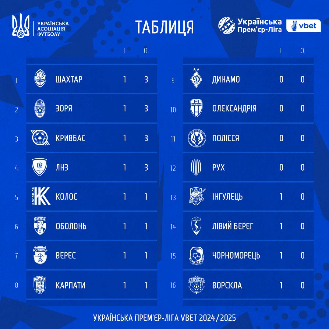 3 и 4 августа состоялись матчи 1-го тура украинской Премьер-лиги по футболу сезона 2024/2025.