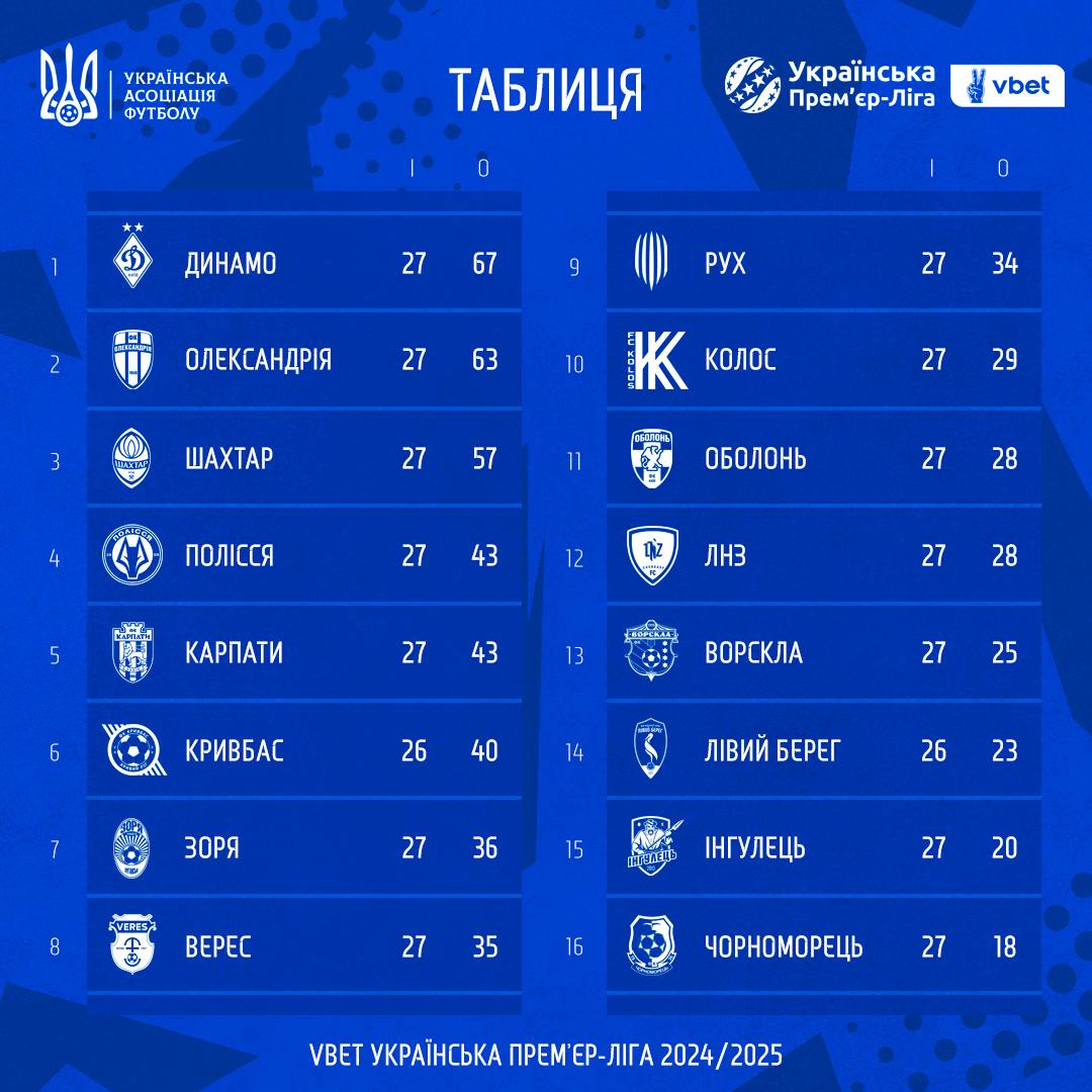 Со 2 по 4 мая прошли матчи 27-го тура украинской Премьер-лиги по футболу сезона-2024/25.