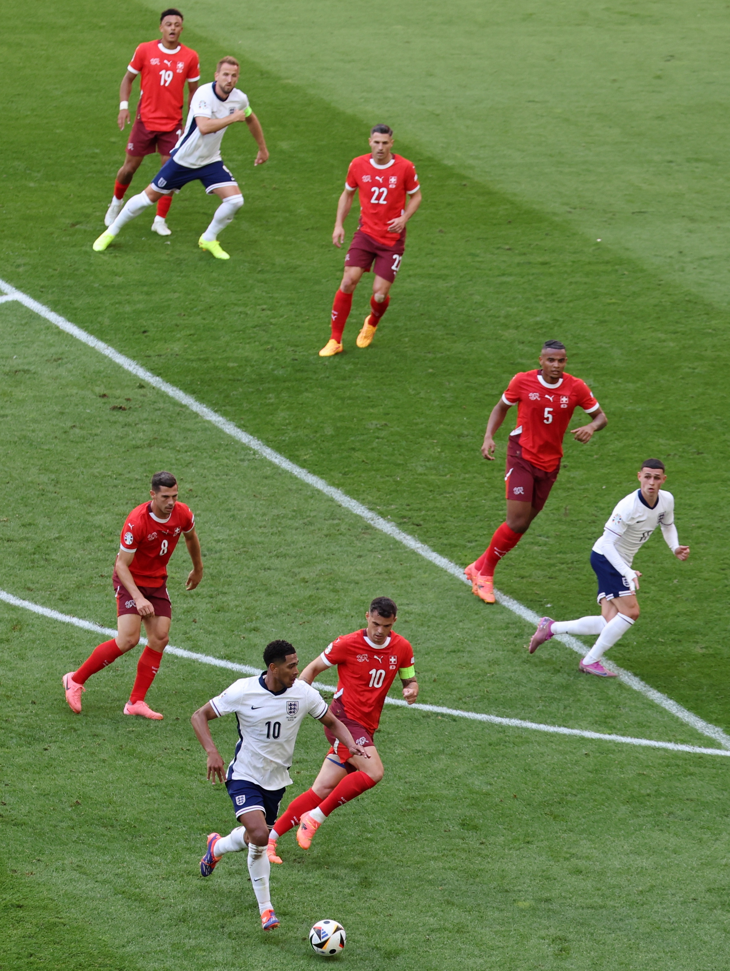 В субботу, 6 июля, в рамках 1/4 финала Евро-2024 на стадионе "Меркур Шпиль-Арена" в Дюссельдорфе сыграли между собой национальные команды Англии и Швейцарии.