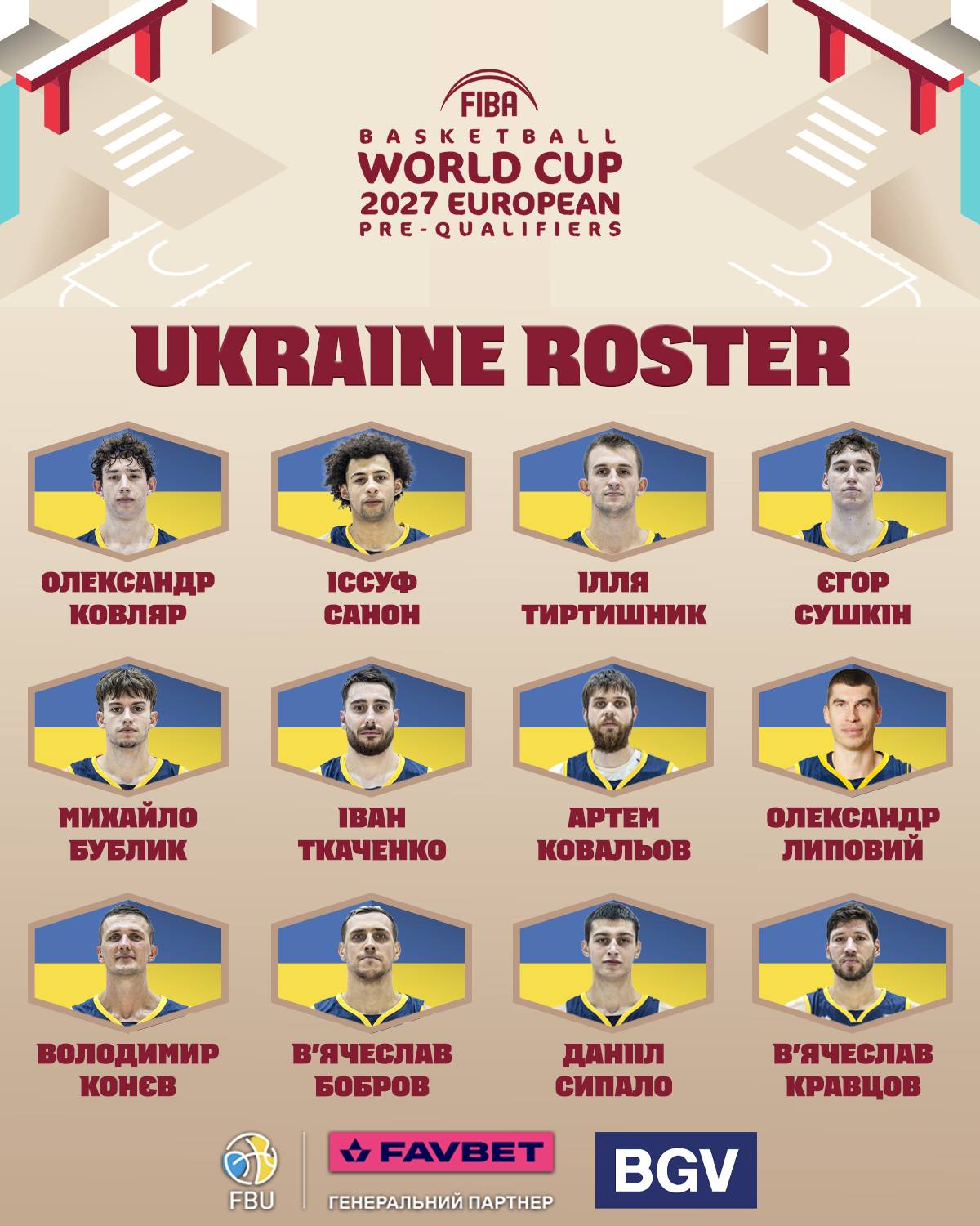 Федерация баскетбола Украины представила состав национальной сборной, которая стартует в преквалификации чемпионата мира-2027.