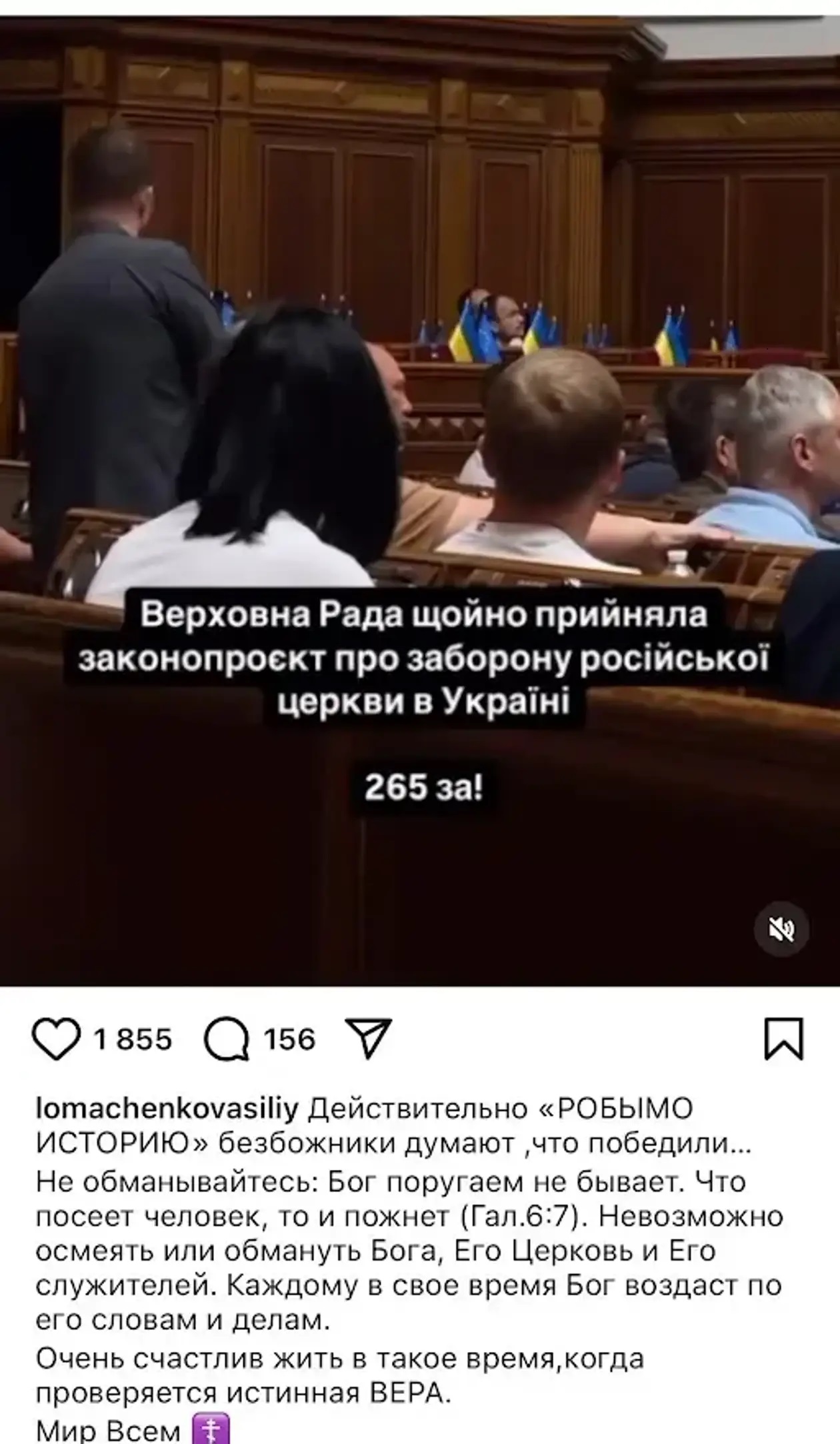 Василий Ломаченко ранее неоднократно публиковал в Instagram посты, посвященные поддержке УПЦ МП и критике действий руководства Украины в отношении церкви, которая тесно связана с Россией.