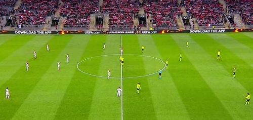 19'. Сантуш пытался нанести прямой удар со штрафного, не очень неудачно это сделал и попал мячом в ноги Марлоса.