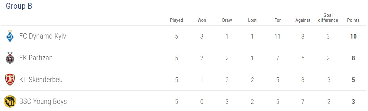 Таким образом, "Динамо" все еще может потерять первое место в группе. Для выхода в плей-офф с первой строчки украинский гранд должен не проиграть "Партизану" в заключительном туре.