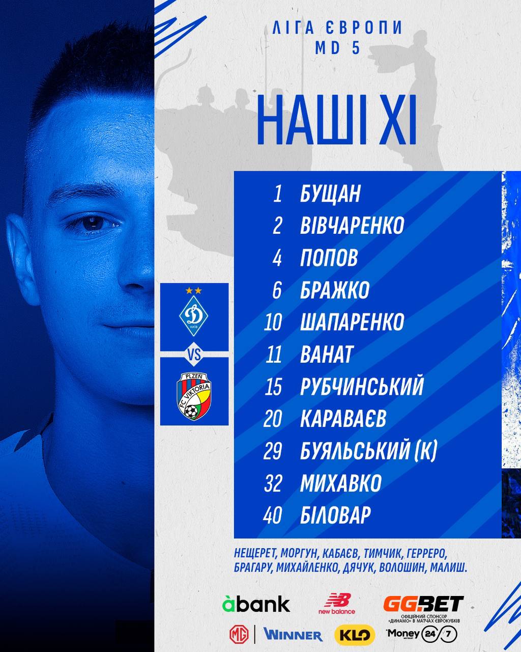 "Динамо": Бущан, Биловар, Попов, Михавко, Караваев, Бражко, Шапаренко, Вивчаренко, Буяльский, Рубчинский, Ванат.