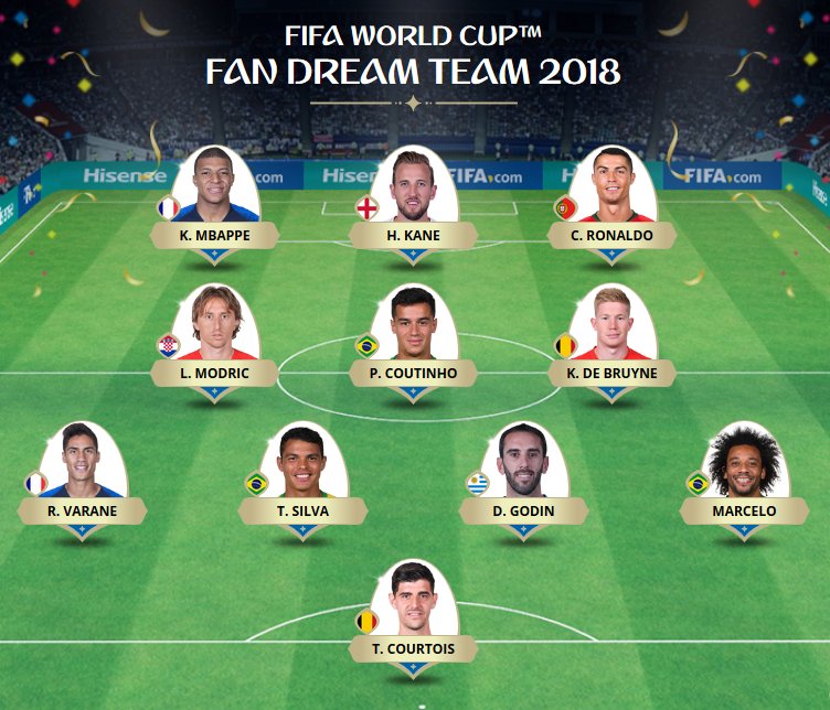 Символическая сборная ЧМ-2018 по версии болельщиков: