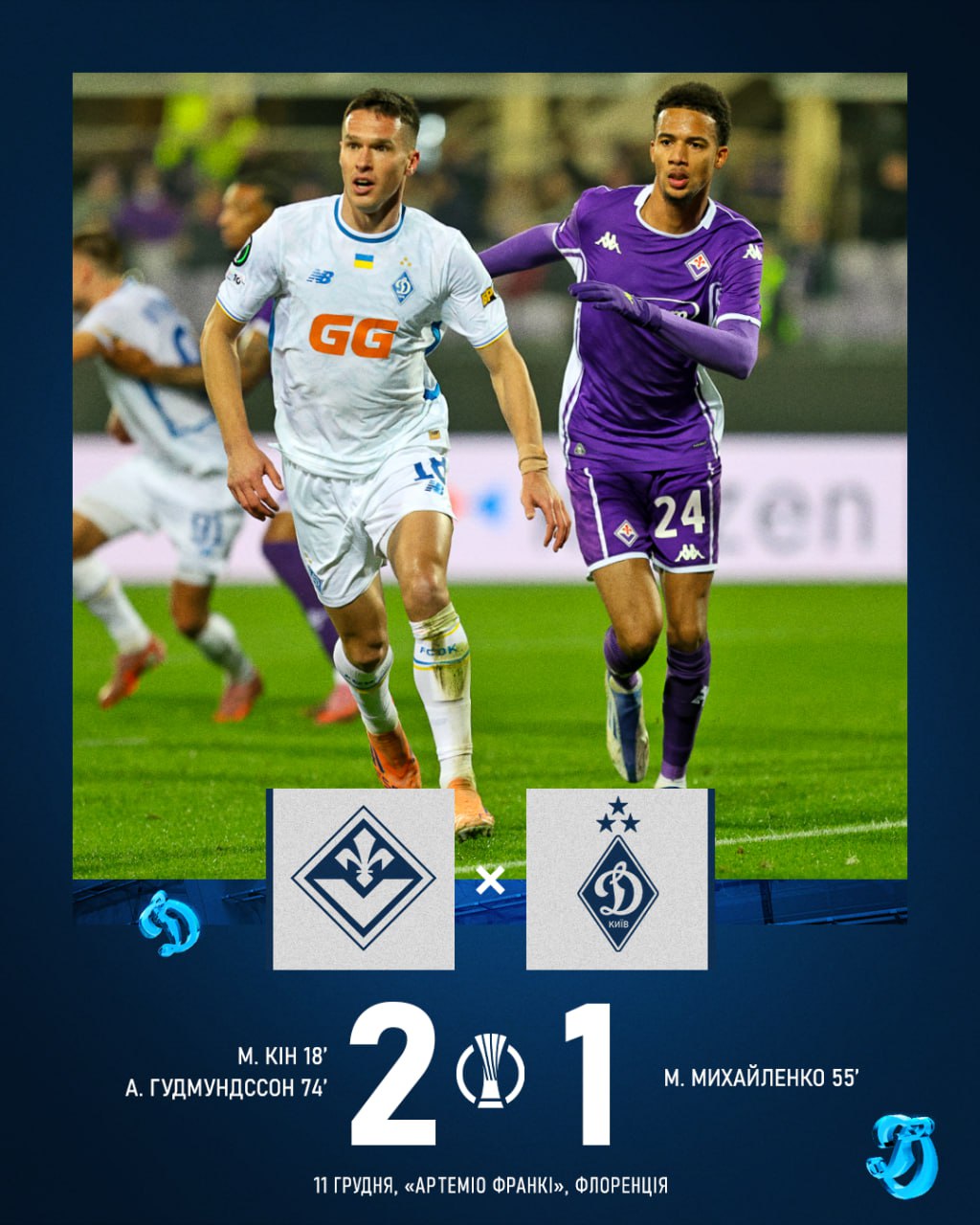 В четверг, 11 декабря, во Флоренции на стадионе "Артемио Франки" киевское "Динамо" сыграло в пятом туре основного раунда Лиги конференций против итальянской "Фиорентины".