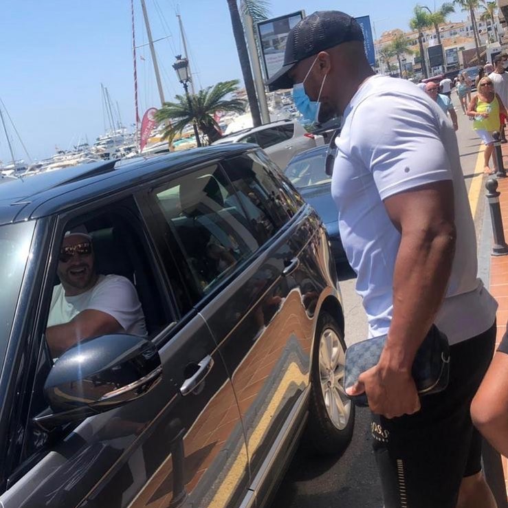 Чемпионы супертяжелого веса Тайсон Фьюри (30-0-1, 21 КО) и Энтони Джошуа (23-1, 21 КО) случайно встретились на улице в испанской Марбелье во время отдыха.