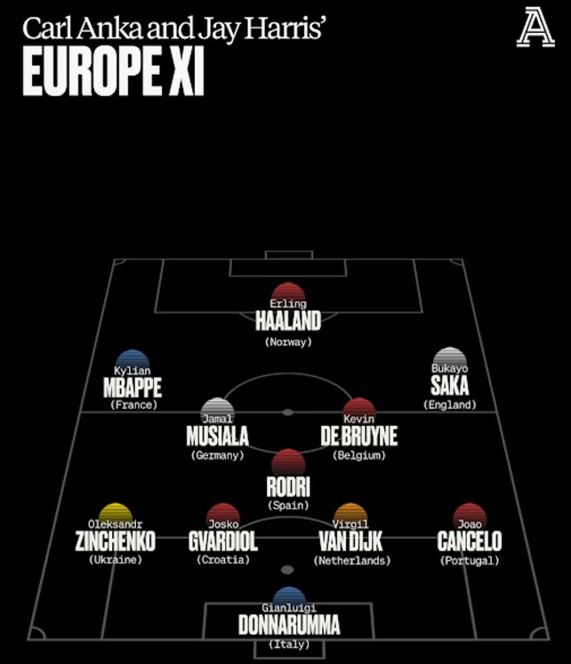 Нападающие: Букайо Сака ("Арсенал", сборная Англии), Килиан Мбаппе (ПСЖ, сборная Франции), Эрлинг Холанд ("Манчестер Сити", сборная Норвегии).