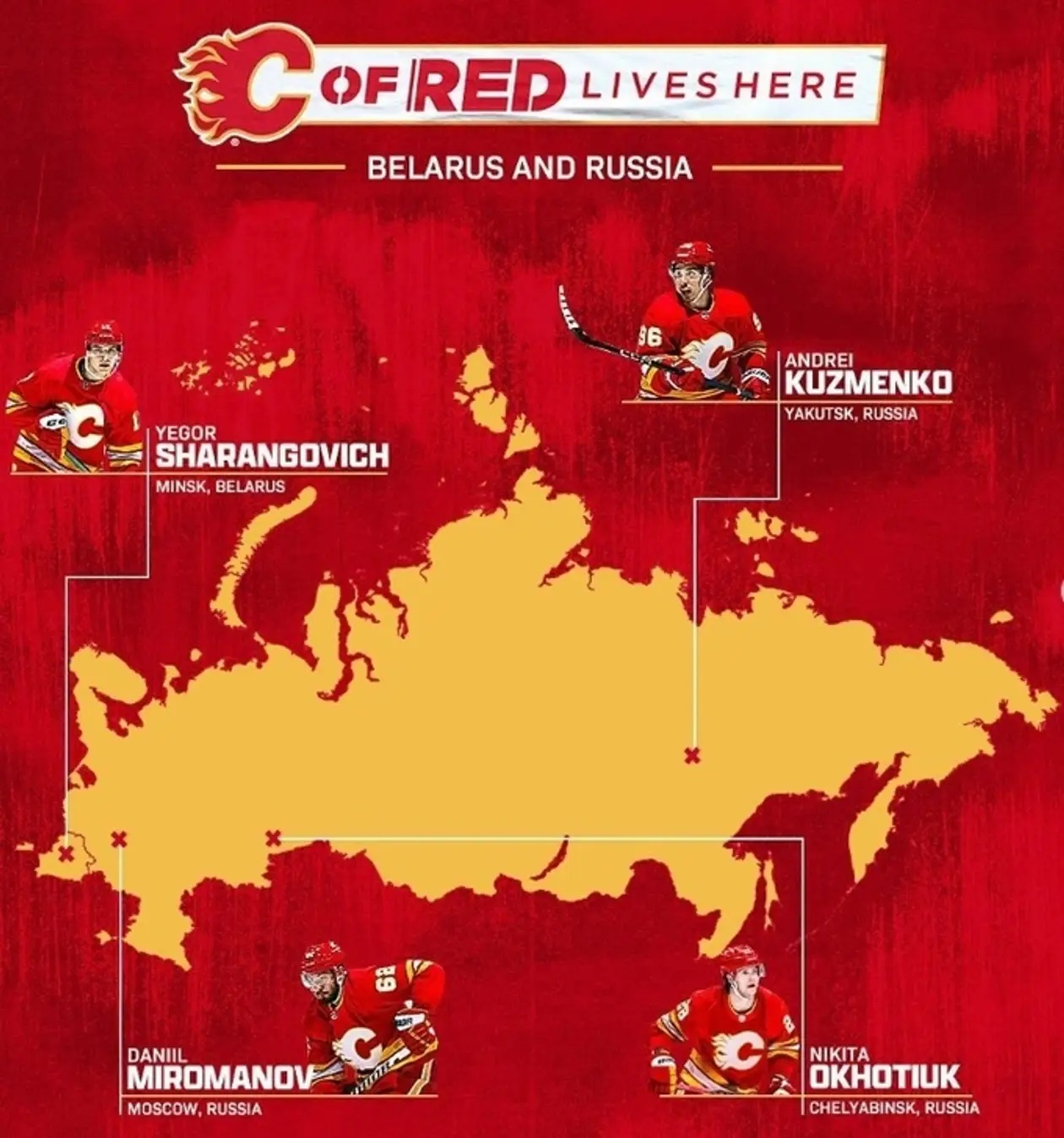 В публикации указаны страны, из которых родом игроки команды. В составе "Калгари" выступают трое россиян и один белорус.