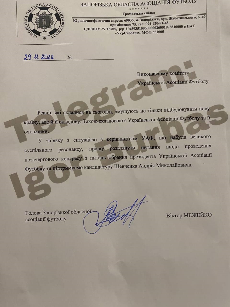 Кандидатуру Шевченко выдвинул председатель Запорожской областной ассоциация футбола Виктор Межейко, который в прошлом входил в "Партию регионов".