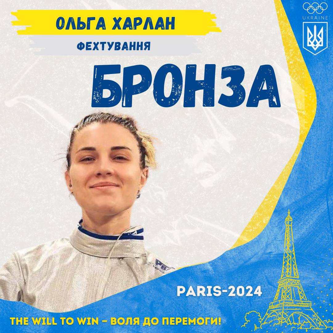 В понедельник, 29 июля, украинская фехтовальщица Ольга Харлан завоевала бронзовую награду на Олимпиаде-2024 в Париже в индивидуальных соревнованиях на сабле.