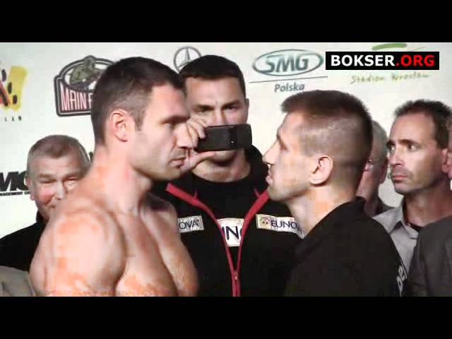 Отметим, что первым на весы встал Т.Адамек. Его вес - 98 килограммов. А вес В.Кличко за сутки до боя составляет 110,5 килограммов.