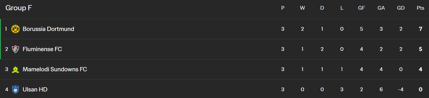 Голы: Рибейро, 11, Рейнерс, 62, Мотхиба, 90 – Нмеча, 16, Гирасси, 34, Беллингем, 45, Мудау, 59 (автогол)