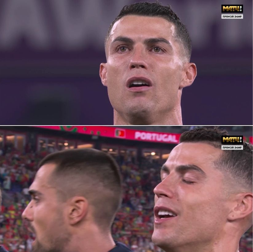 Звездный форвард Криштиану Роналду во время исполнения гимна своей страны перед игрой не смог сдержать эмоций и заплакал.