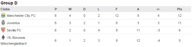 "Севилья" одержала минимальную победу над "Ювентусом", а гол забил Льоренте после подачи с углового от Коноплянки. Сразу после победного эпизода Евгений был заменен. "Вольфсбург" первым пропустил, но в итоге одолел МЮ и оставил английский гранд за бортом турнира. "Манчестер Сити" уступал "Боруссии" со счетом 1:2, но в итоге забил немецкой команде еще три мяча и уверенно победил. "Реал" устроил настоящий "голепад" в матче с "Мальме", отправив в ворота шведов восемь голов, из которых четыре - на счету Криштиану Роналду.