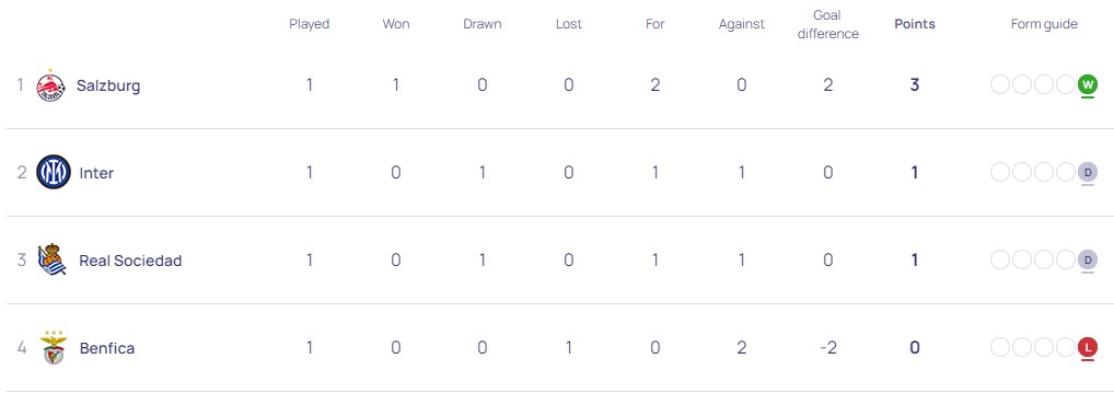 В среду, 20 сентября, состоялись матчи 1-го тура еще в четырех группах Лиги чемпинов-2023\2024.
