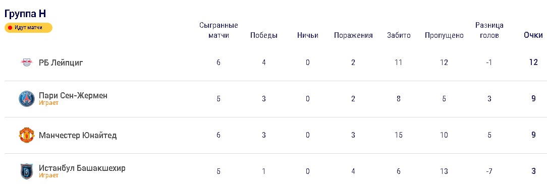 "Лейпциг" победил "Манчестер Юнайтед" и отправил английский клуб в Лигу Европы, а "Ювентус" на выезде разгромил "Барселону" (3:0) и занял первое место в группе.