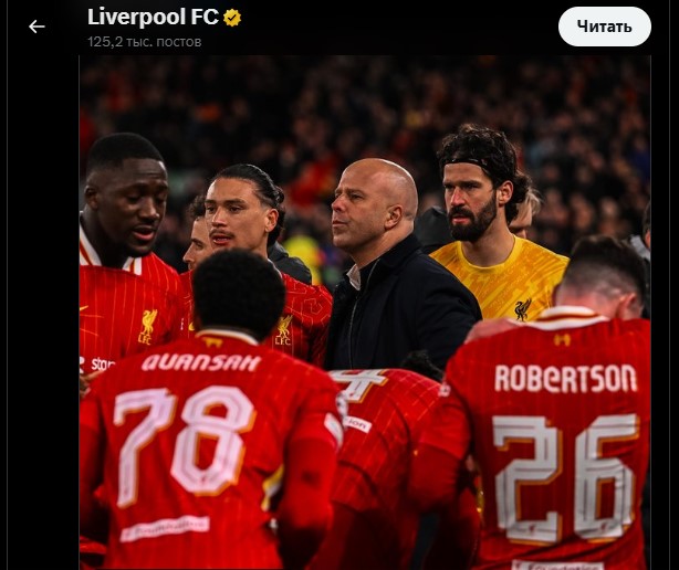 "Ливерпуль": Алиссон, ван Дейк, Конате, Трент Александер-Арнольд, Робертсон, Собослаи, Гравенберх, Мак Аллистер, Салах, Диас, Жота