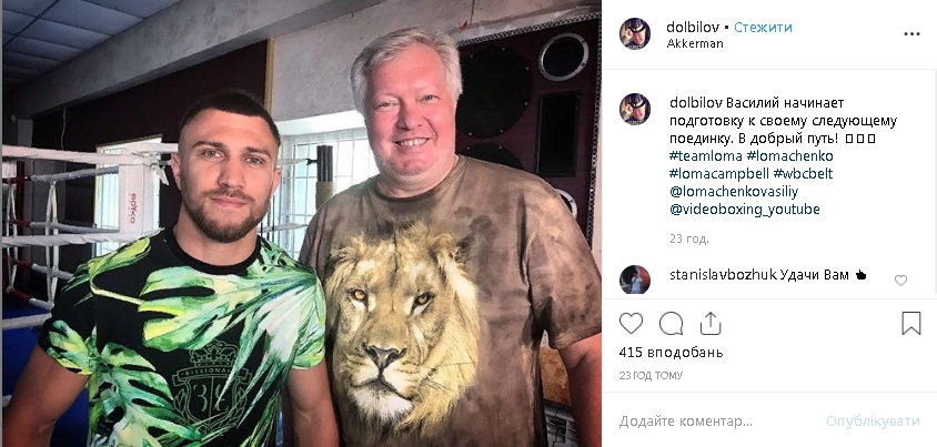 Чемпион мира в легком весе по версиям WBA и WBO Василий Ломаченко (13-1, 10 КО) начал подготовку к поединку за пояса WBC, WBA и WBO против британца Люка Кэмпбелла (20-2, 18 КО). Об этом сообщил украинский режиссер Сергей Долбилов.