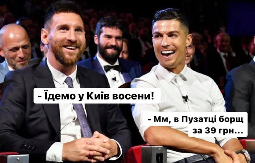 "Лучше не выходите играть", "третье место за счастье будет", "помянем наши клубы", "эх, "Минай" бы вместо "Барселоны", "это 2020-й, детка", "такой осени Киев еще не видел", "Месси и Роналду должны оценить подъем украинского футбола", "50 голов на двоих пропустим, скриньте", "Забарный против Месси, Корниенко против Бензема, звучит?", "а вот и международные наблюдатели на выборах мэра Киева появились", - так прокомментировали событие украинские болельщики.