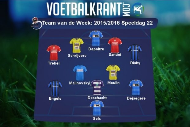 Символическая сборная лучших игроков 22-го тура чемпионата Бельгии по версии издания Voetbalkrant.