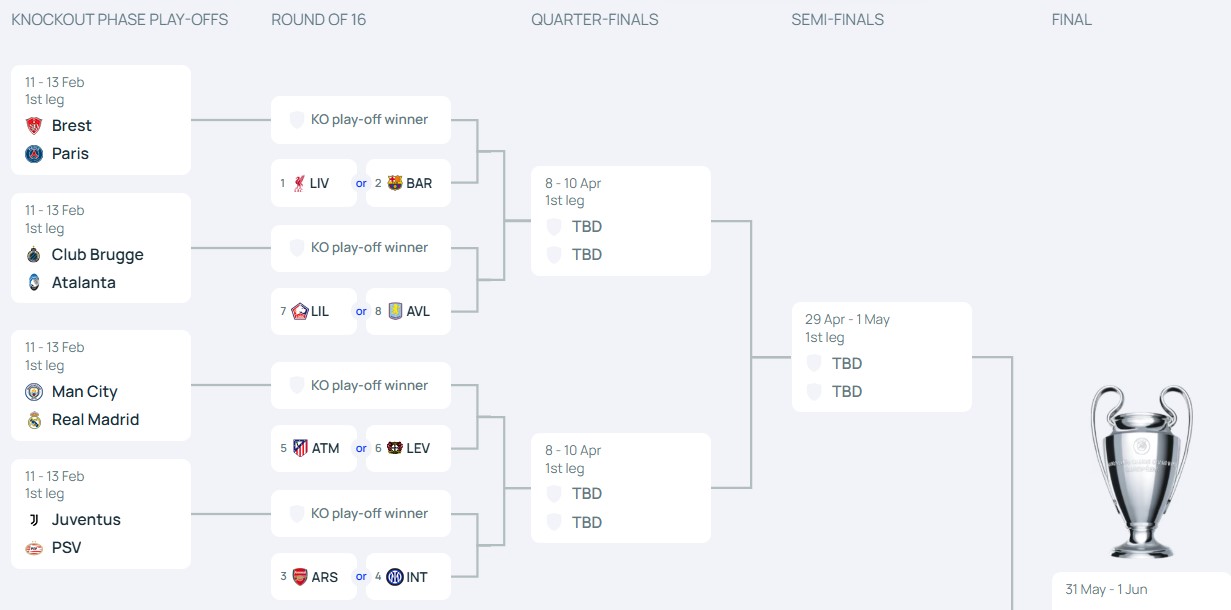 31 января в швейцарском Ньоне состоялась жеребьевка стыковых матчей плей-офф Лиги чемпионов сезона-2024/25.