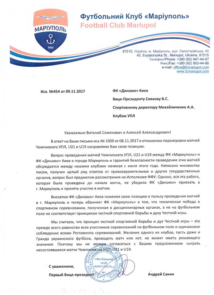 "Почтовый ящик клуба и нашу клубную телефонную линию, после сегодняшнего разгона волны слухов и домыслов в Интернете, обрывают обращения болельщиков "Мариуполя" с просьбами, нет – с требованиями, ни в коем случае не идти на поводу у наших уважаемых партнеров из Киева, и не проводить переигровку несостоявшихся в августе футбольных матчей.