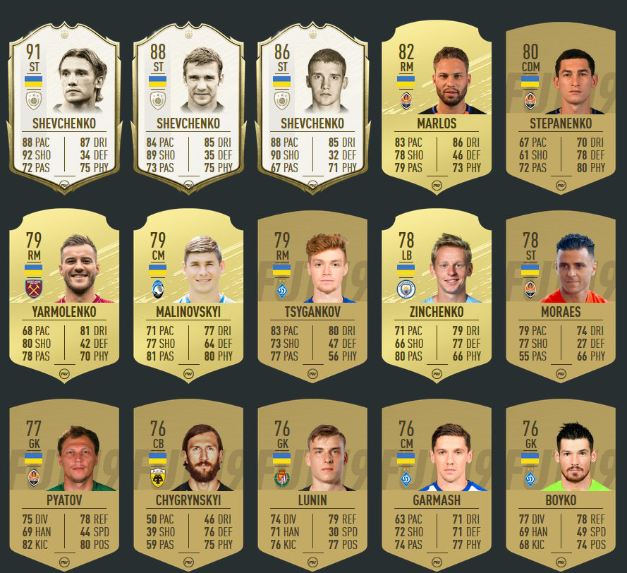 Больше только в карточках легенды украинского футбола Андрея Шевченко - 86, 88 и 91.