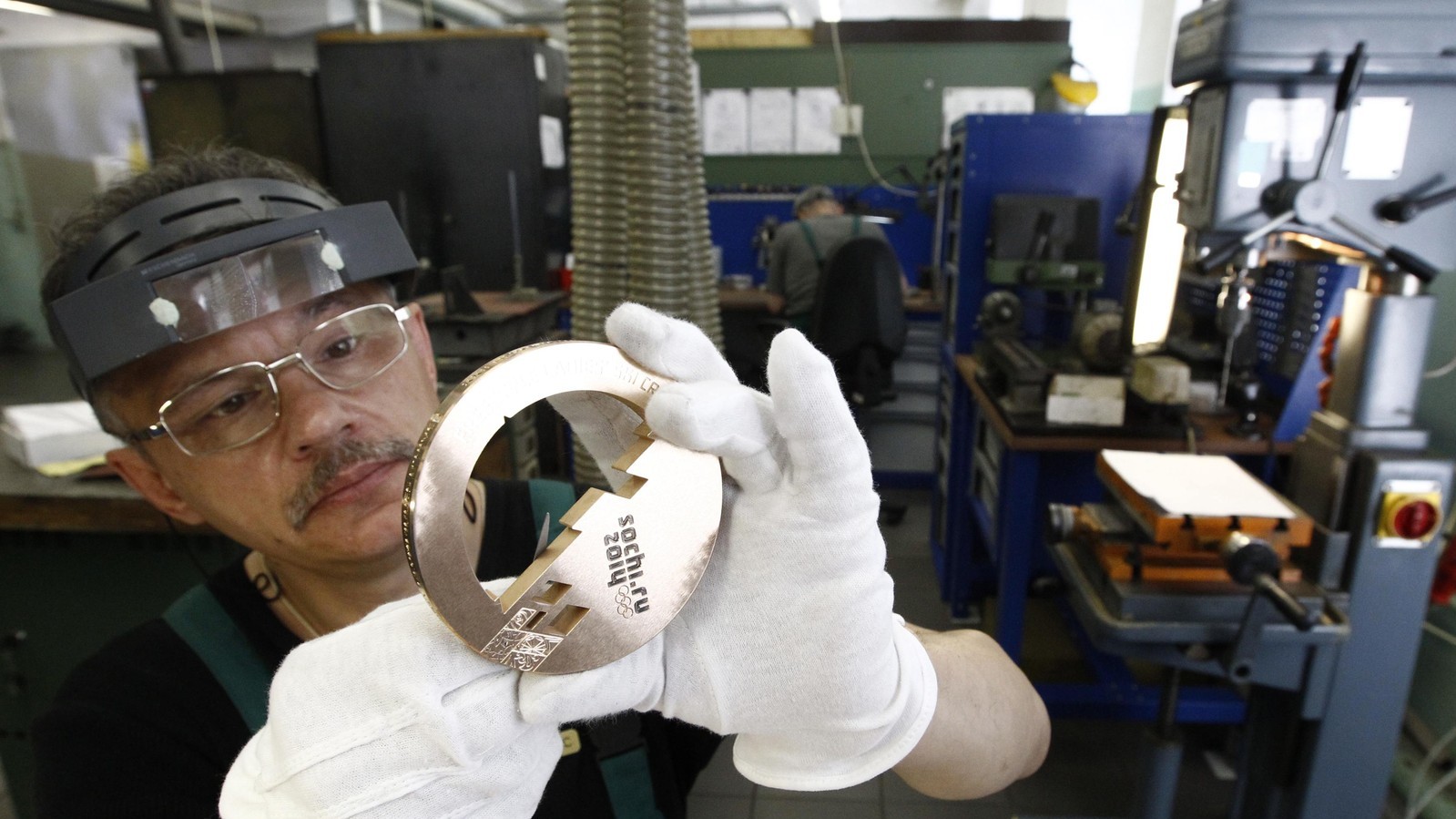На ювелирном заводе "Адамас" в Москве всего будет изготовлено 1300 золотых, серебряных и бронзовых медалей. На их создание будет потрачено не менее трех килограммов золота 999-й пробы, две тонны серебра 960-й пробы и 700 килограммов бронзы.