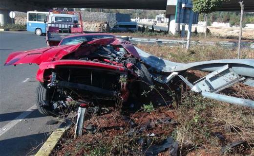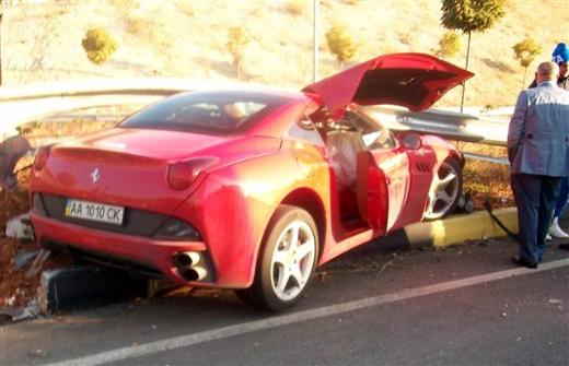 Двигаясь по объездной трассе города, Милевский на одном из крутых поворотов не справился с управлением и протаранил дорожный отбойник. Скорее всего, Милевский не пострадал, потому как в его авто сработали все средства безопасности, а вот с "Феррари" дела обстоят похуже. У "итальянца" повреждена передняя часть кузова и подвески.