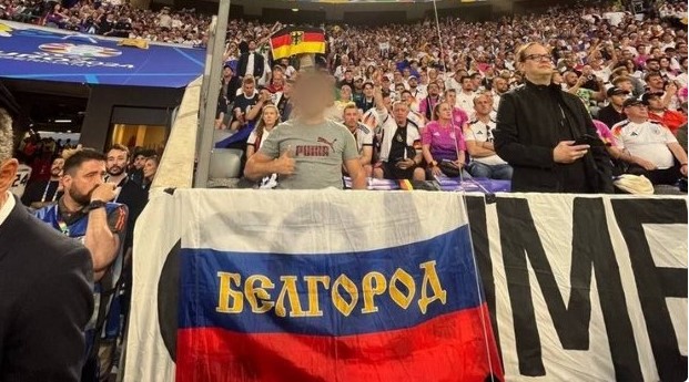 По ходу первого тайма этой встречи на трибуне, которая была расположена за воротами сборной Шотландии, были вывешены три российских флага. В частности, на одном из флагов значилась надпись "Белгород".