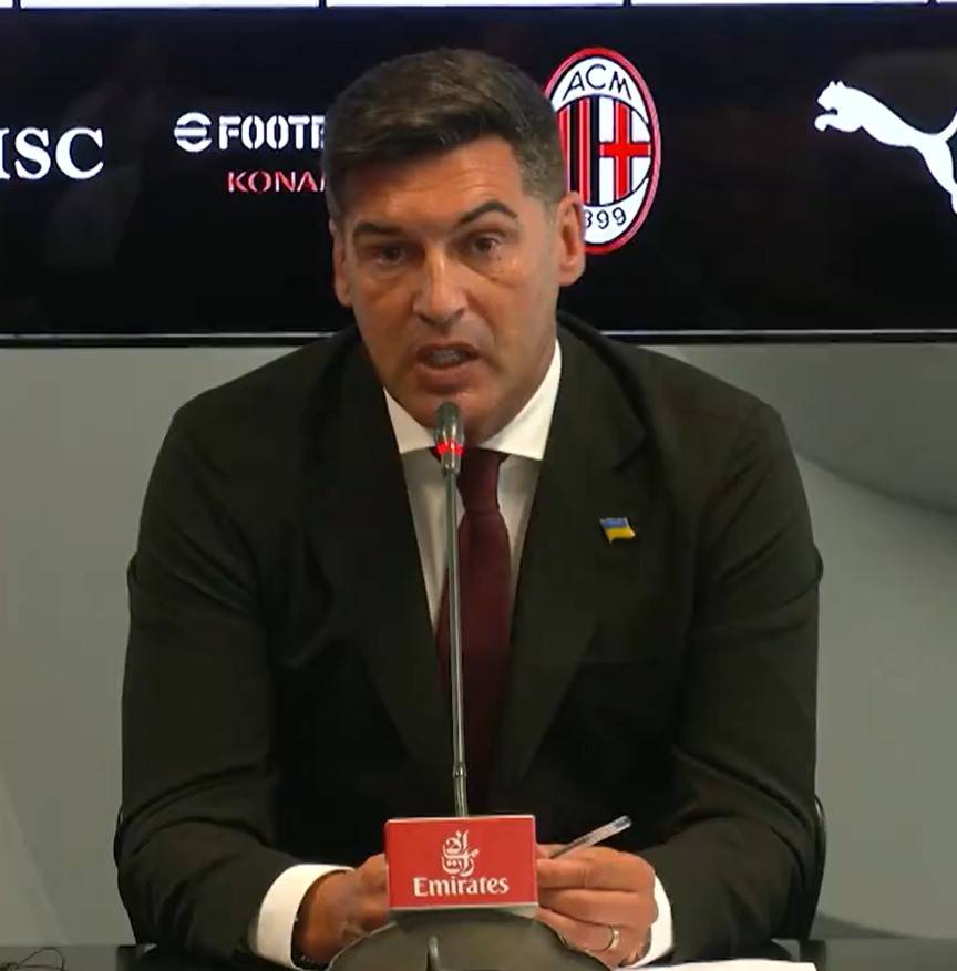 Новый главный тренер итальянского "Милана" Паулу Фонсека пришел на свою первую пресс-конференцию во главе команды со значком с флагом Украины на пиджаке.