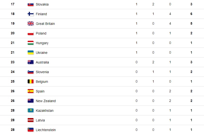 Медальный зачет Пхенчхана выиграла сборная Норвегии, у которой 14 золотых, 14 серебряных и 11 бронзовых медалей. У Германии столько же золотых наград, но за счет большего количества "серебра" норвежцы стали первыми.